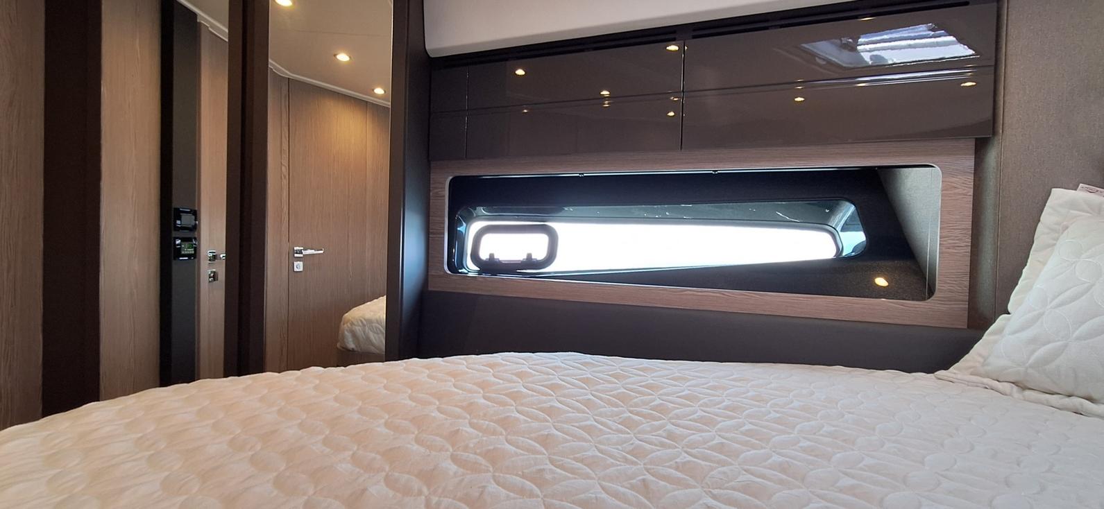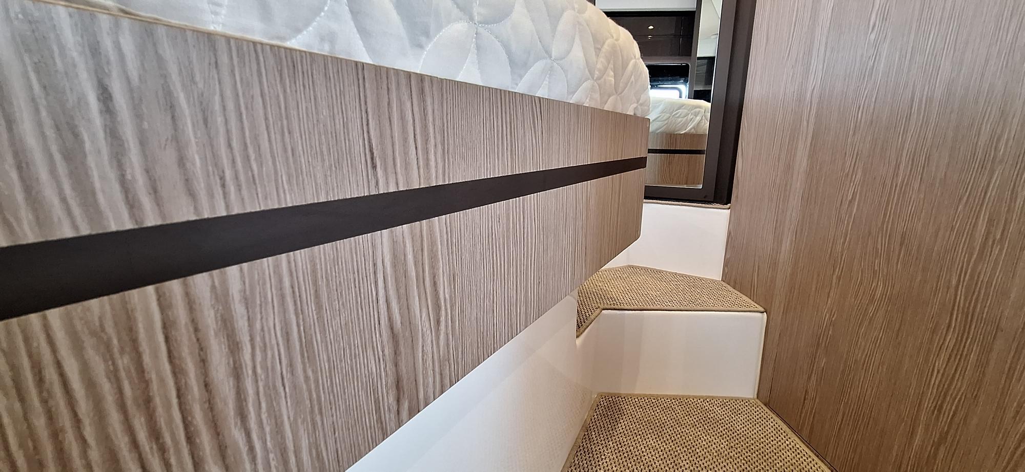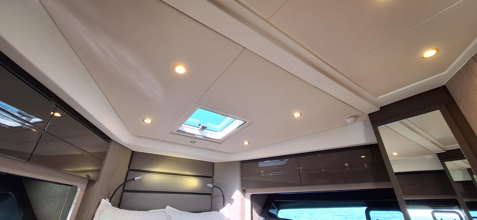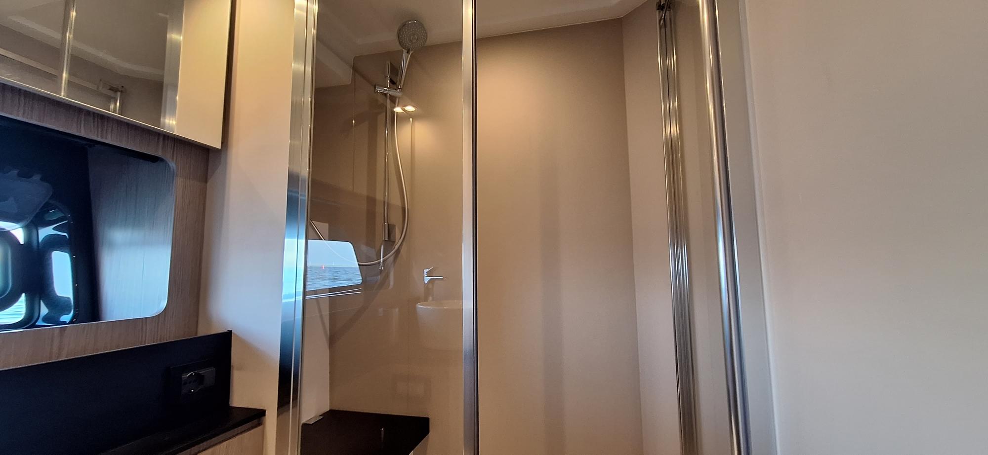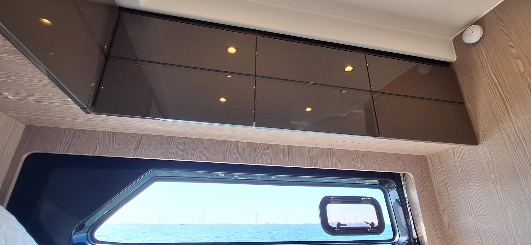 De ownerscabin vinden we in de boeg en is een fijne en lichte ruimte, vanzelfsprekend ook voorzien van haar eigen ensuite badkamer. Alle ruimtes profiteren van een krachtig airconditioningsysteem, inclusief de cockpit. Het stijlvolle interieur, met een smaakvolle kleurstelling is nauwelijks gebruikt.