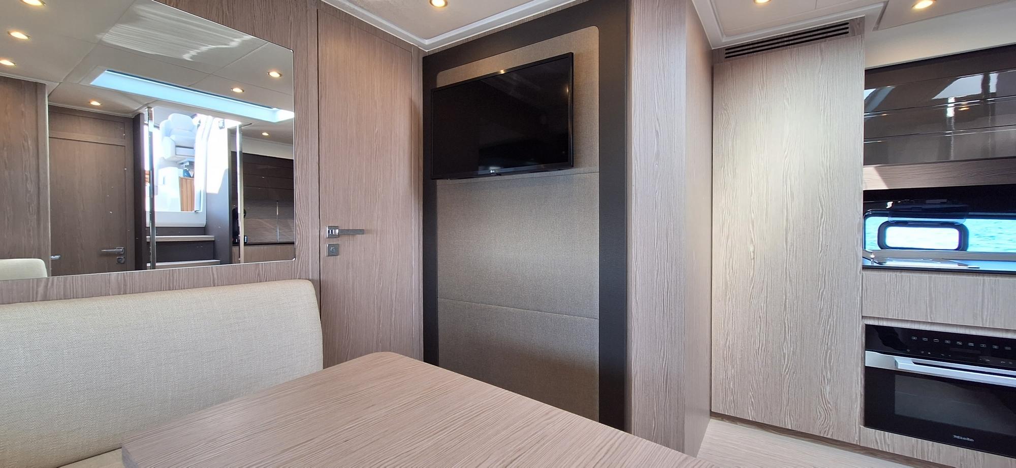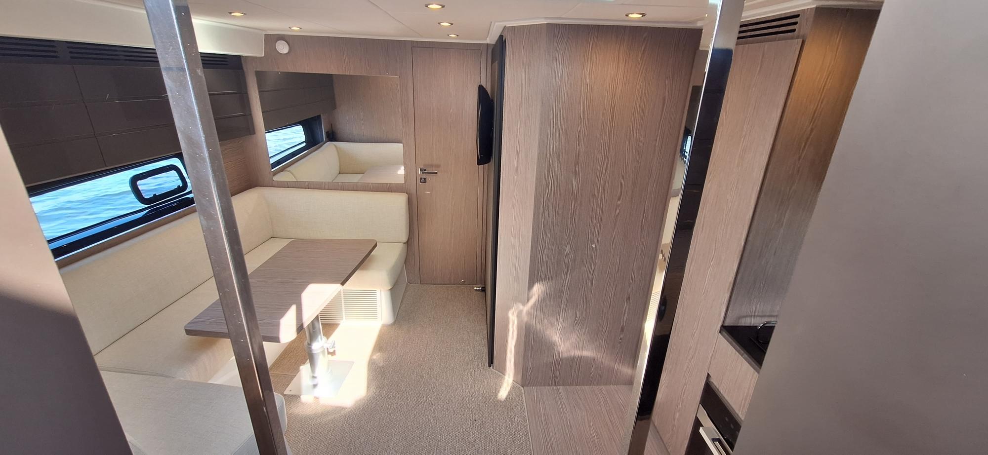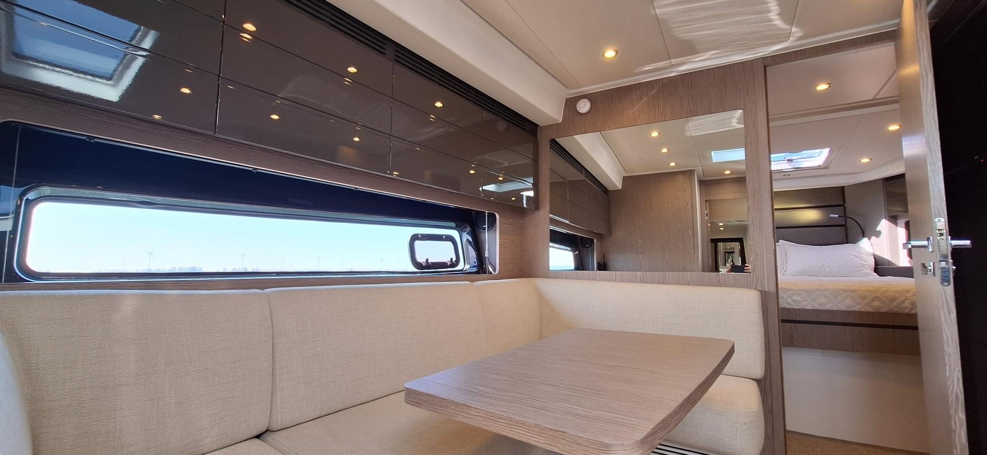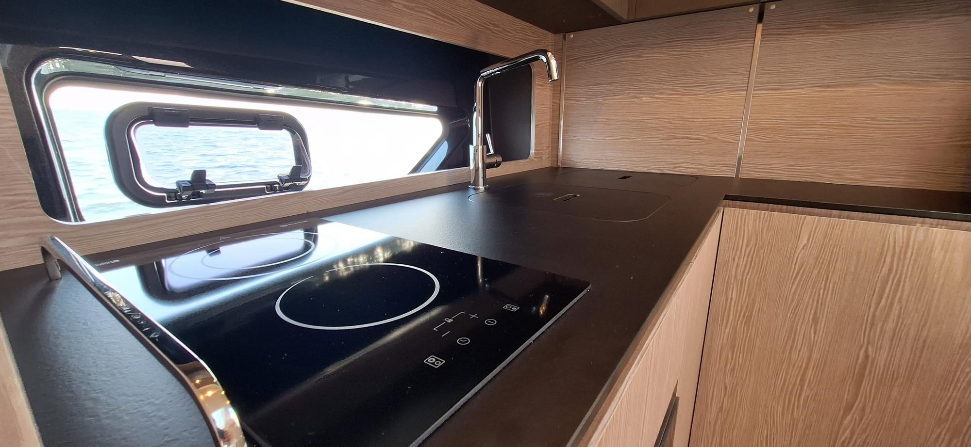 De ownerscabin vinden we in de boeg en is een fijne en lichte ruimte, vanzelfsprekend ook voorzien van haar eigen ensuite badkamer. Alle ruimtes profiteren van een krachtig airconditioningsysteem, inclusief de cockpit. Het stijlvolle interieur, met een smaakvolle kleurstelling is nauwelijks gebruikt.