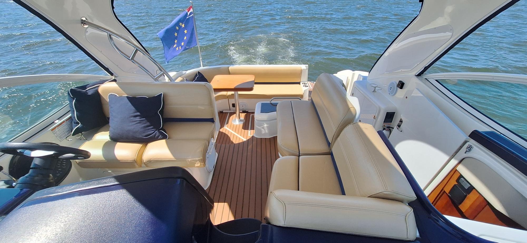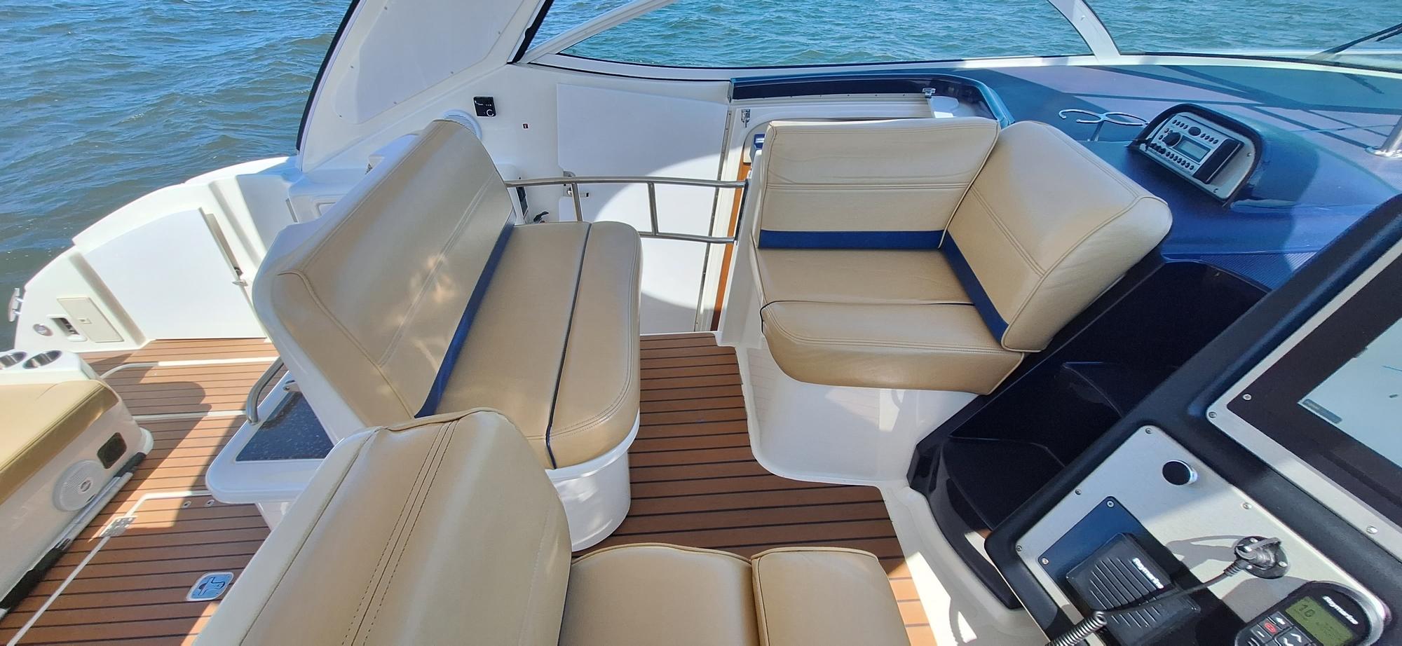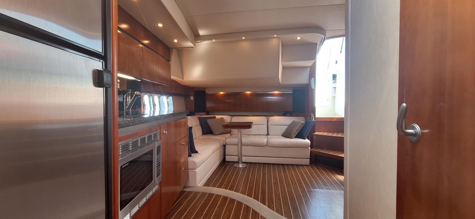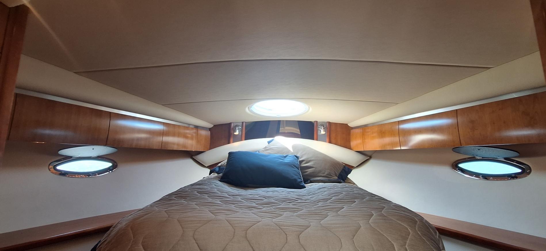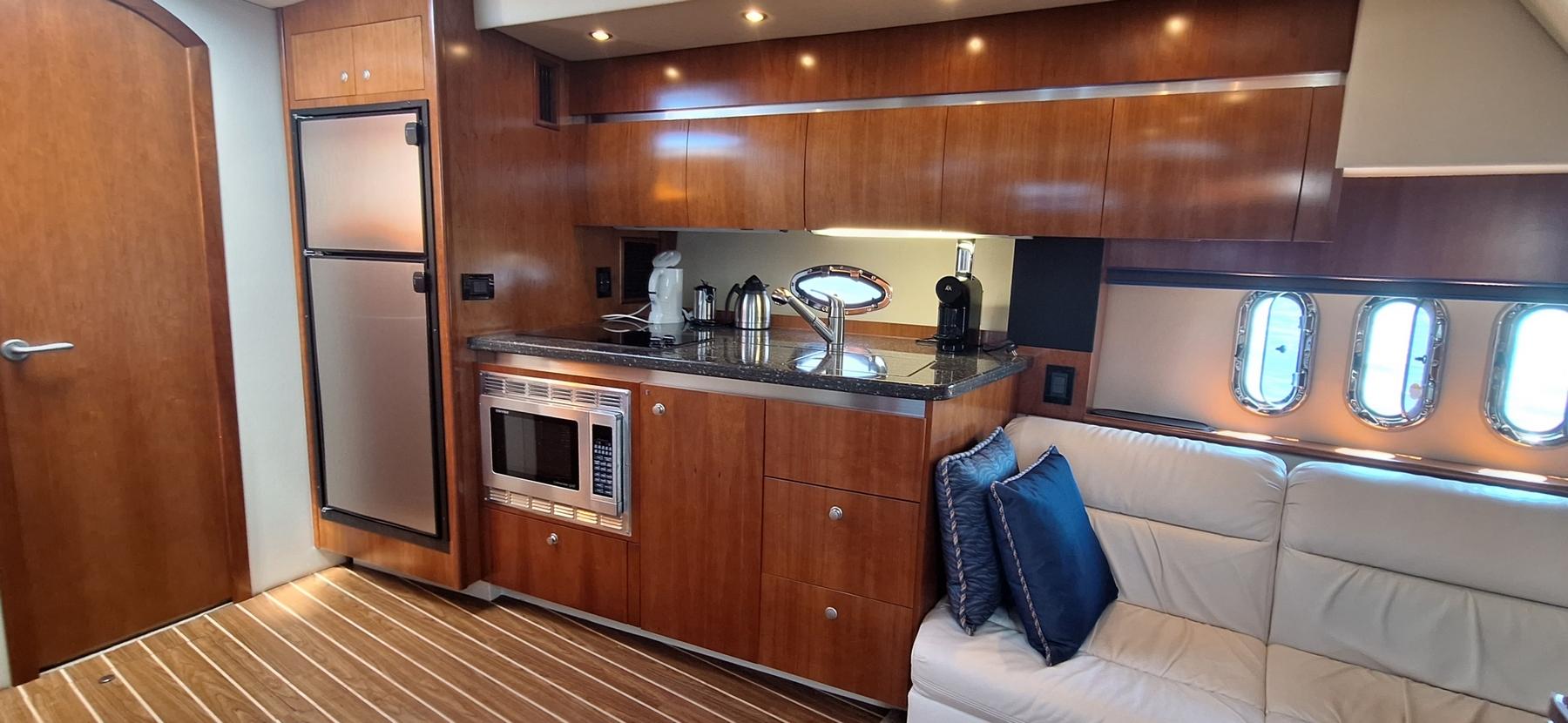 De cockpit heeft meerdere niveaus en een gezellige lay-out die simpel anders geconfigureerd kan worden. De cabine voelt meer als een thuis aan dan als een jacht! De galley is zeer ruim en bijzonder goed toegerust met apparatuur, waardoor het bereiden van eten zeer eenvoudig wordt. De dinette is heerlijk om aan te eten of te loungen met een wijnkoeler in de buurt waar iedere dorstige watersporter dol op zal zijn. Voorts heeft ze een ruime sofabank die in een handomdraai te veranderen is in een slaapbank, een zeer ruime badkamer en vóór in het jacht een ruime cabin met tweepersoonsbed. In de cockpit, de salon en de hut is de stahoogte bijzonder goed, iets wat vooral lange mensen zeer zal aanspreken.