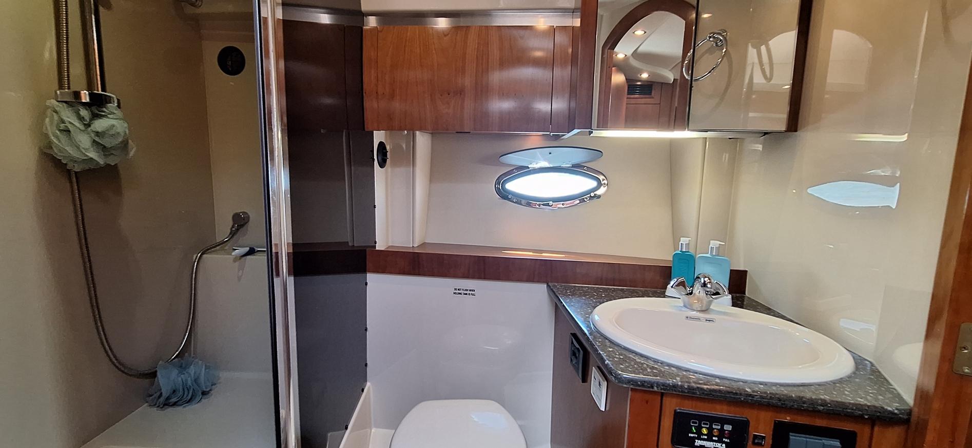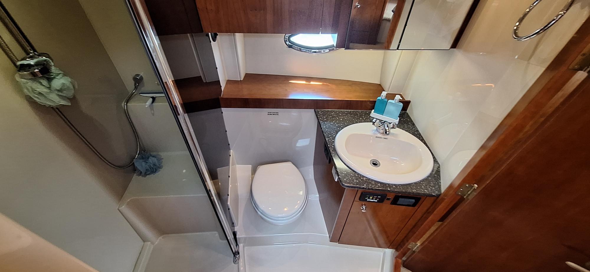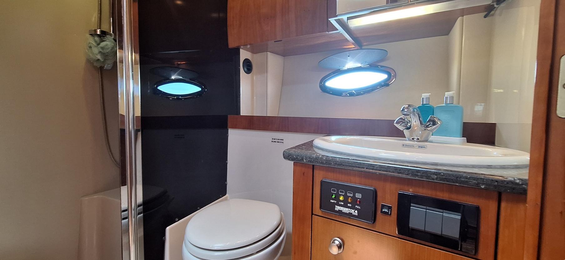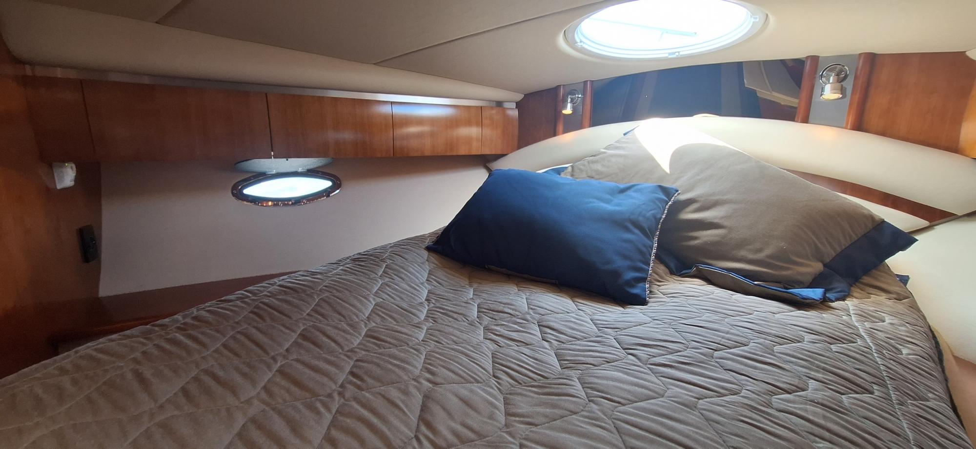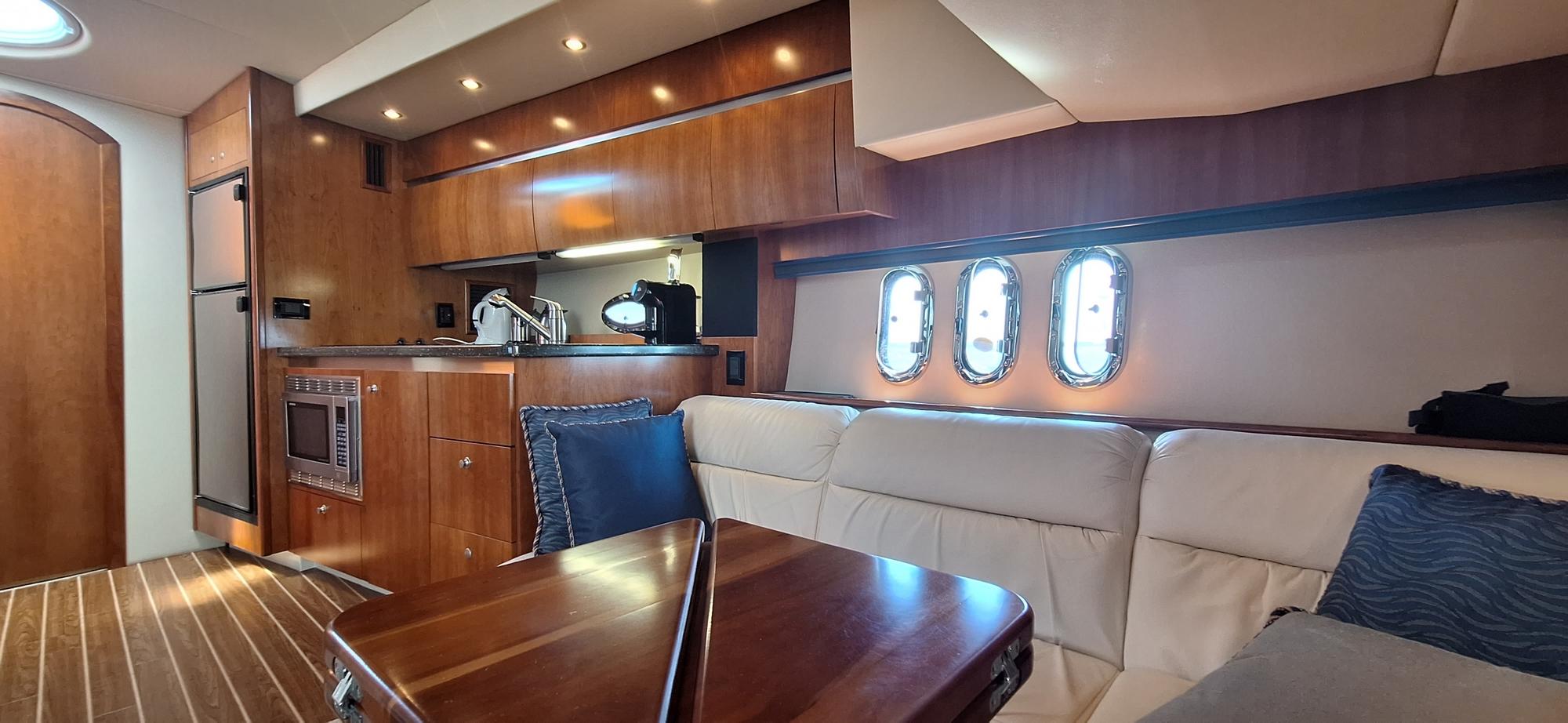 De cockpit heeft meerdere niveaus en een gezellige lay-out die simpel anders geconfigureerd kan worden. De cabine voelt meer als een thuis aan dan als een jacht! De galley is zeer ruim en bijzonder goed toegerust met apparatuur, waardoor het bereiden van eten zeer eenvoudig wordt. De dinette is heerlijk om aan te eten of te loungen met een wijnkoeler in de buurt waar iedere dorstige watersporter dol op zal zijn. Voorts heeft ze een ruime sofabank die in een handomdraai te veranderen is in een slaapbank, een zeer ruime badkamer en vóór in het jacht een ruime cabin met tweepersoonsbed. In de cockpit, de salon en de hut is de stahoogte bijzonder goed, iets wat vooral lange mensen zeer zal aanspreken.