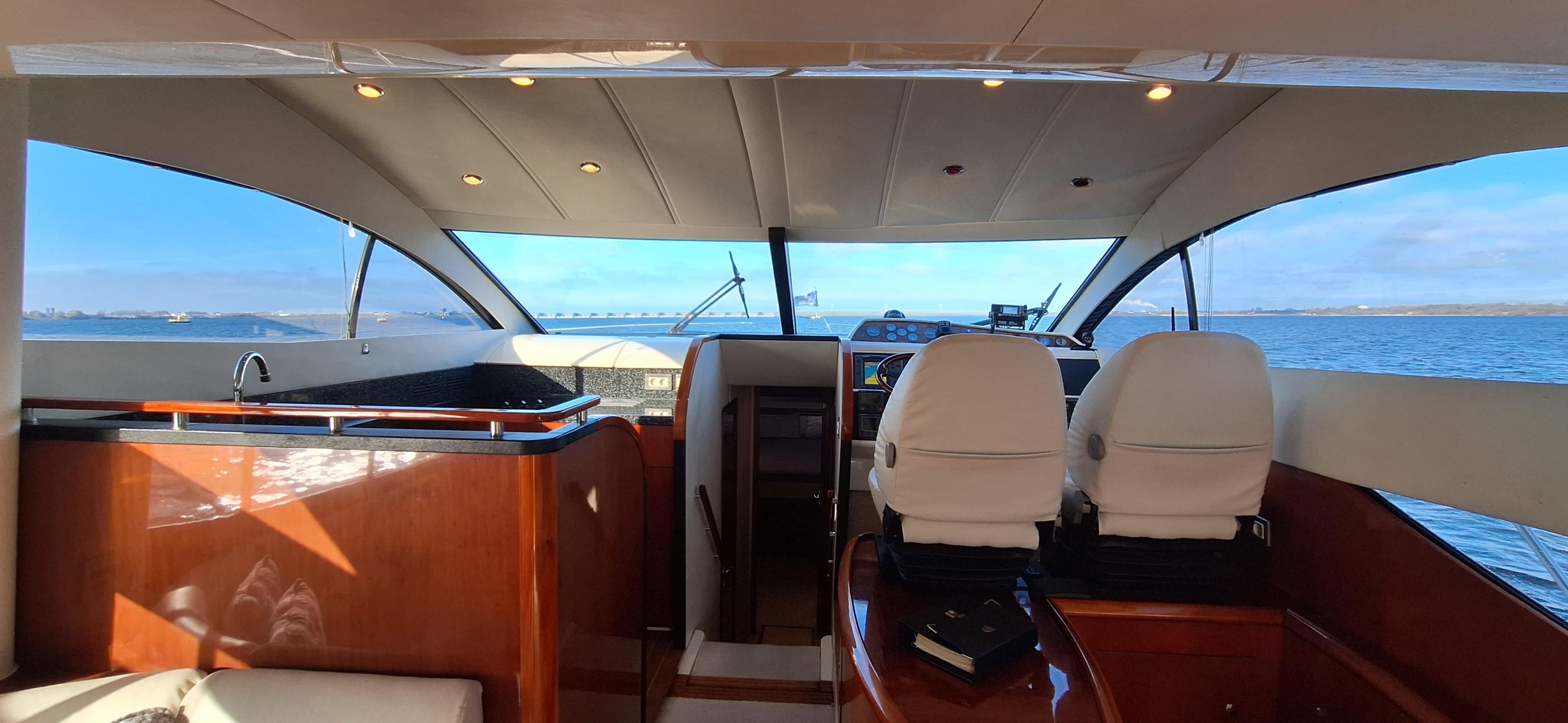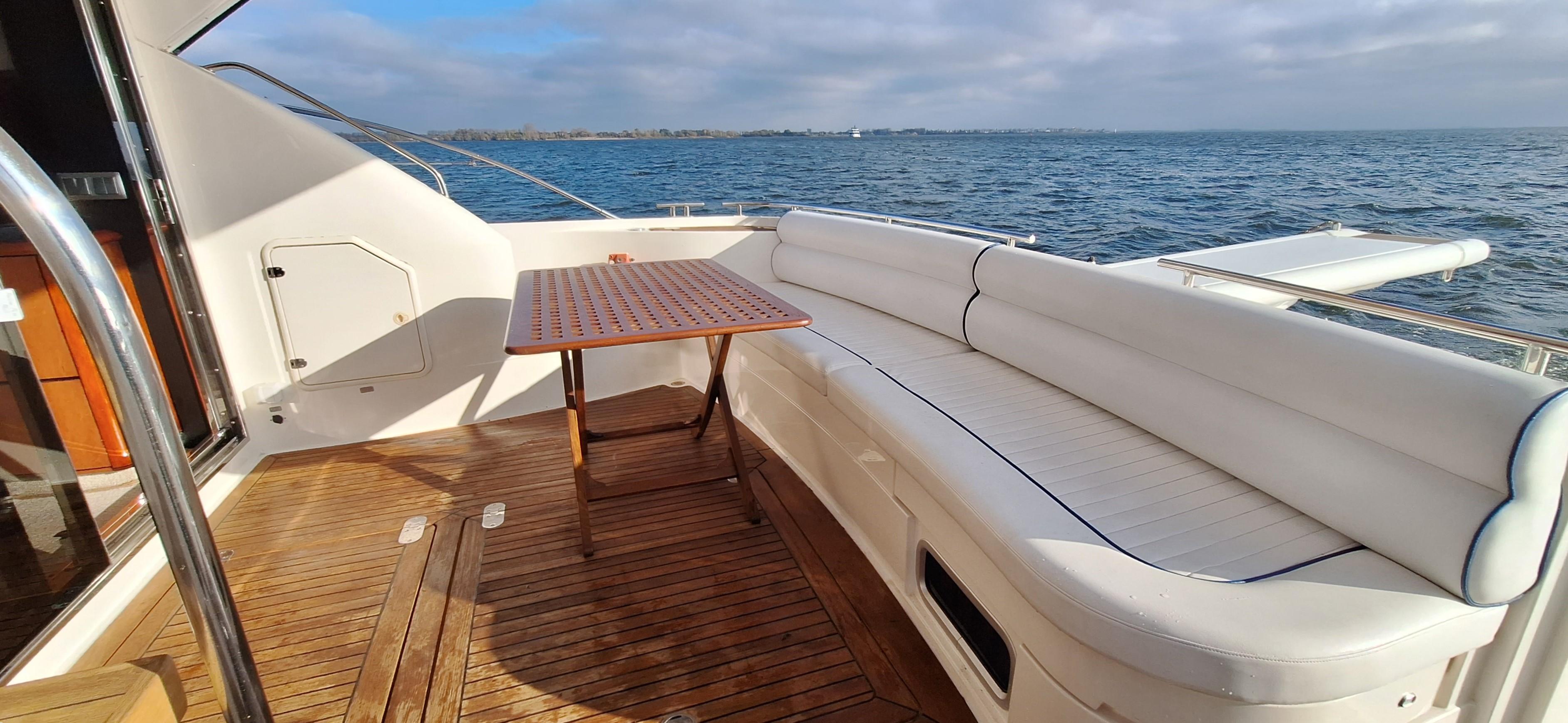 De flybridge is voorzien van een biminitop en een wetbar met grilplaat, wasbak en koelkast. Voor de gehele flybridge is een 2-delig afdekzeil die het geheel droog en schoon houdt.