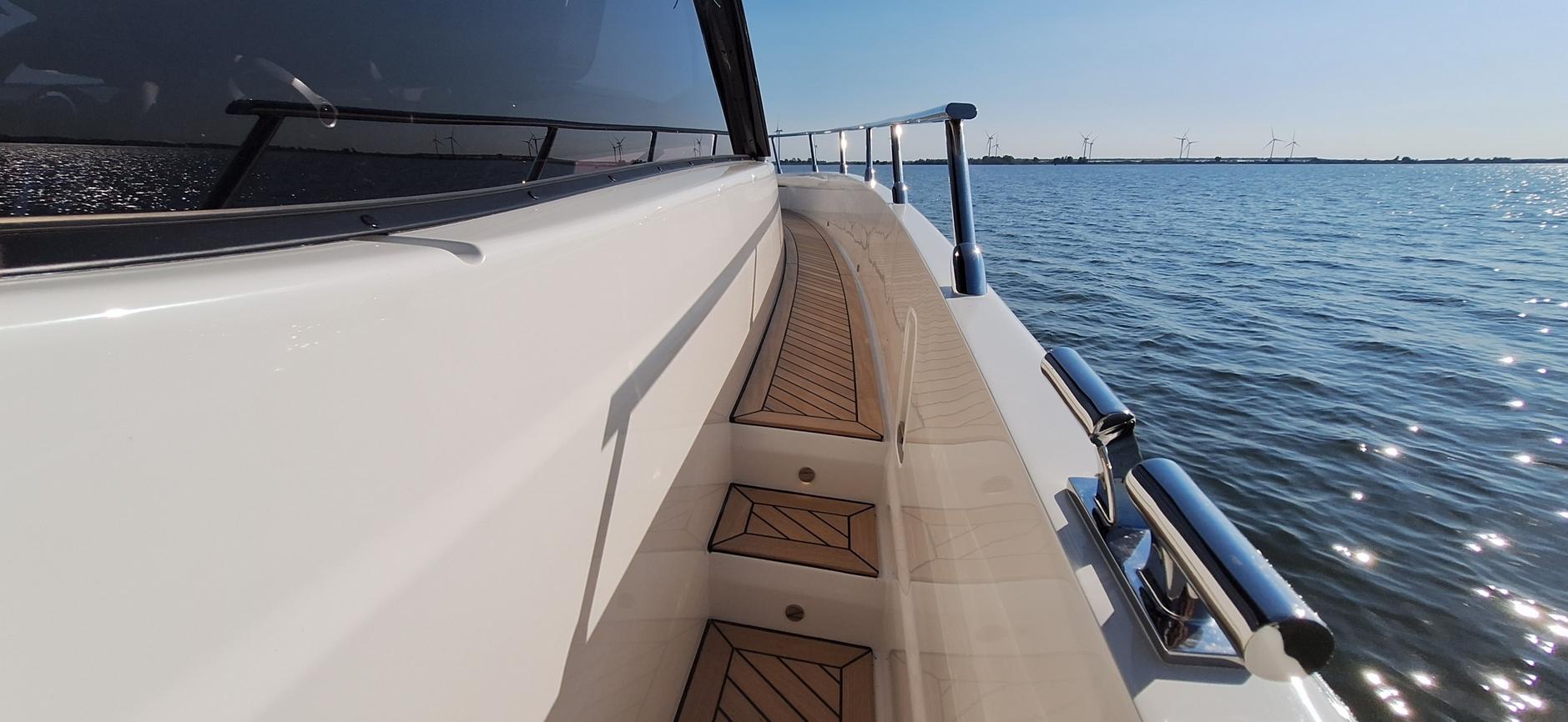 Dankzij de krachtige motorisering en uitstekende vaareigenschappen combineert dit jacht snelheid en stabiliteit met plezierig en veilig varen. Zowel rustig cruisen als sportief varen behoren tot de mogelijkheden.
