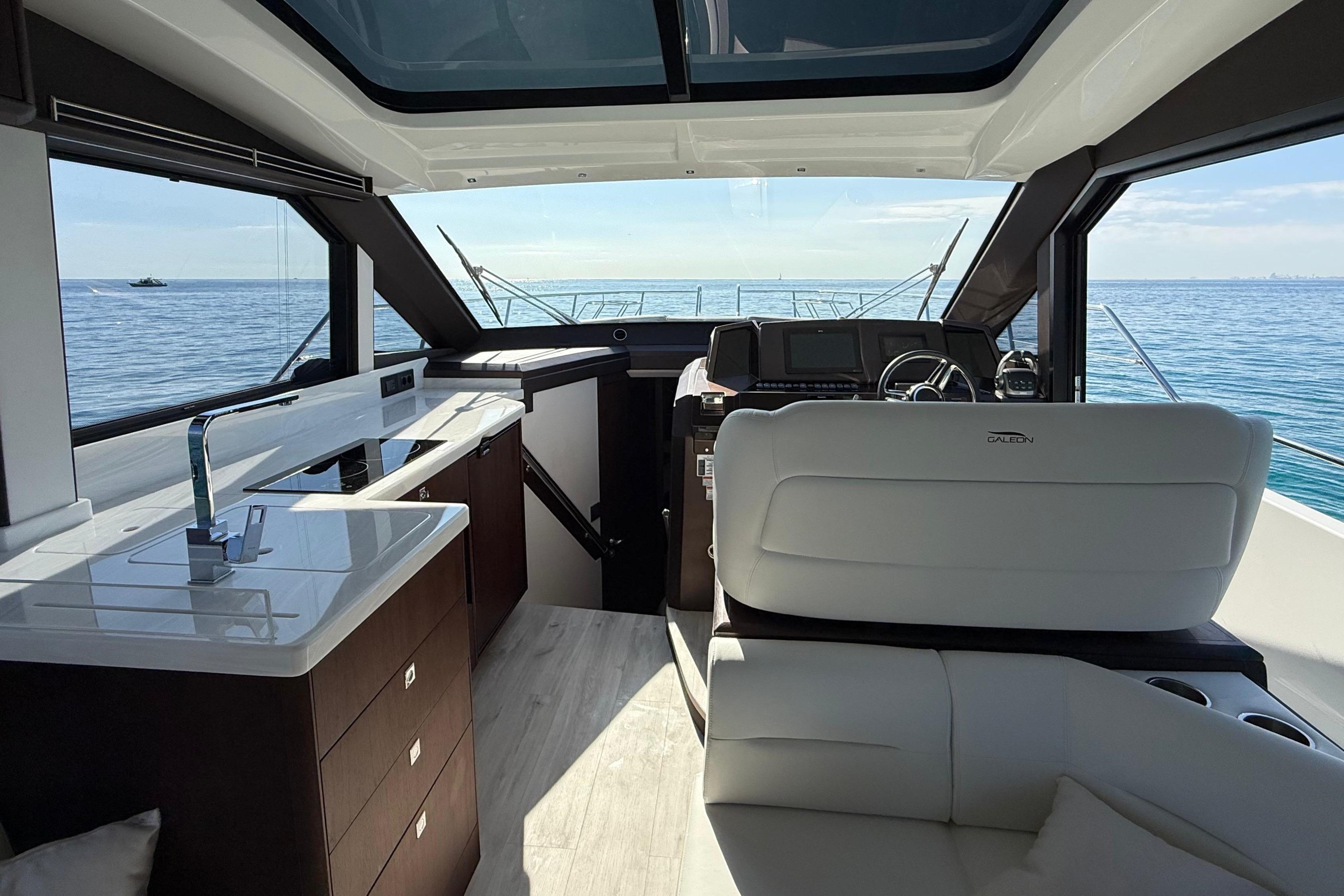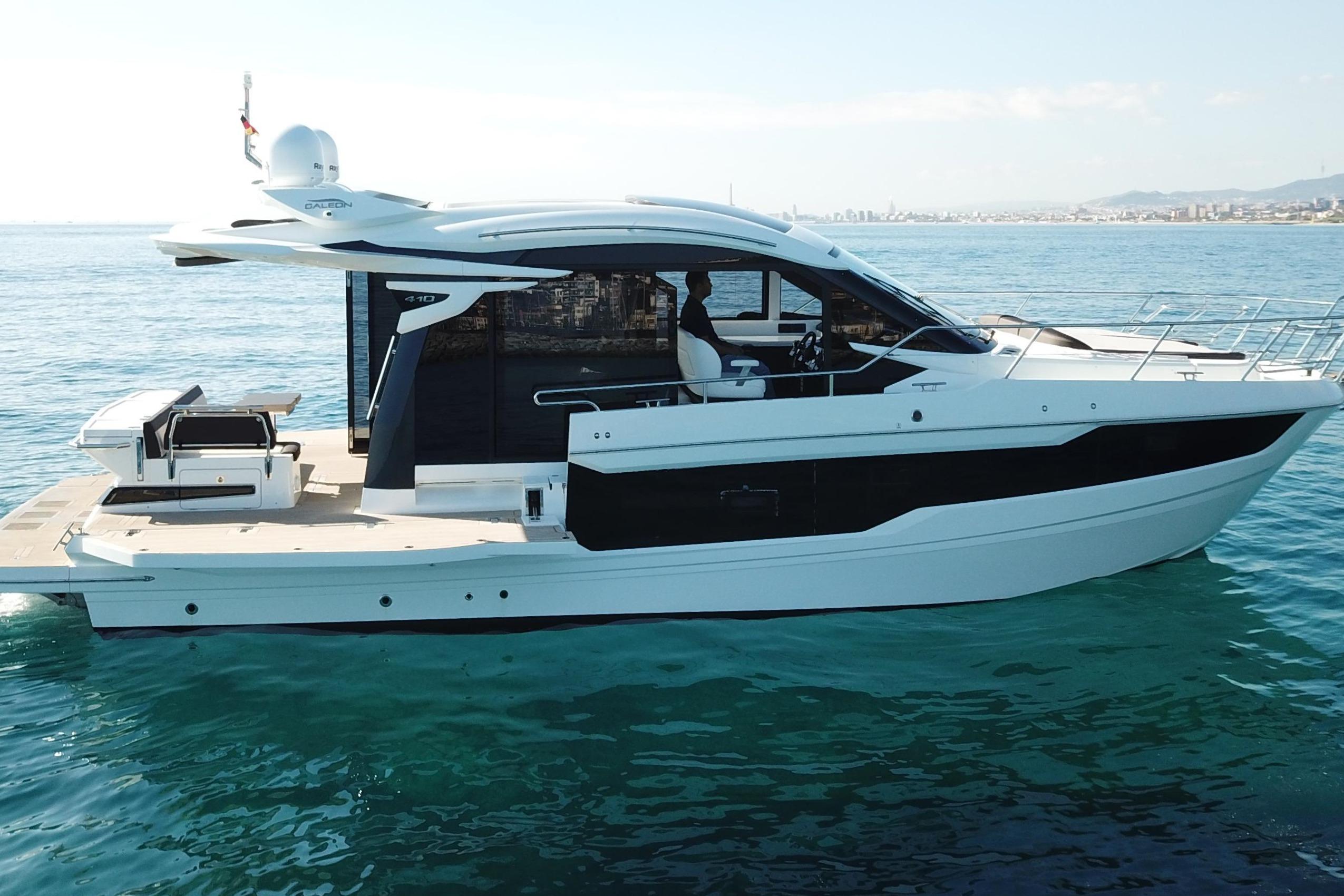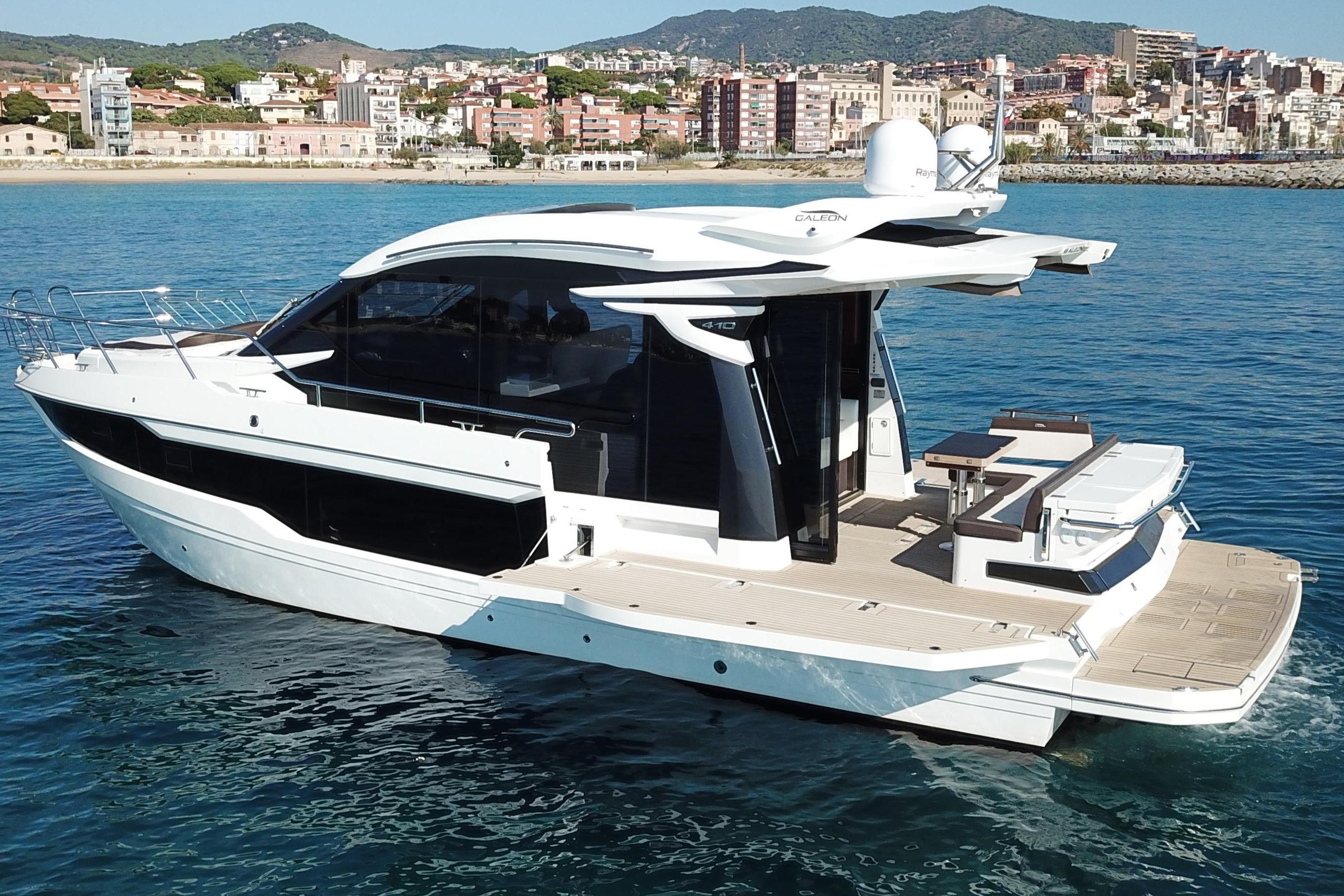 De Galeon 410HTC, het sportieve broertje van de Galeon 400FLY, staat bekend om zijn moderne lijnen, doordachte indeling en premium afwerking; een combinatie die hem tot één van de meest gewilde sportcruisers in dit segment maakt.