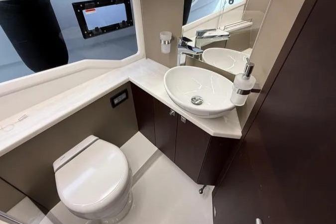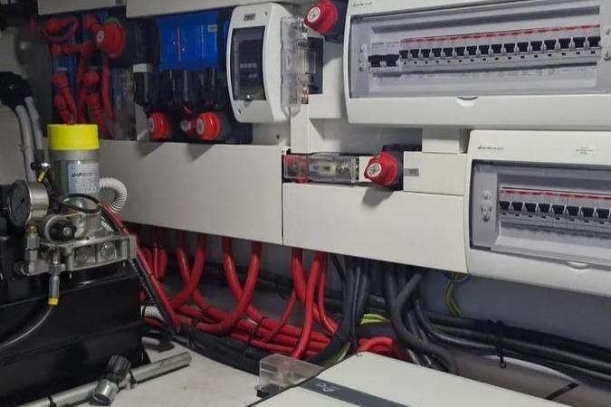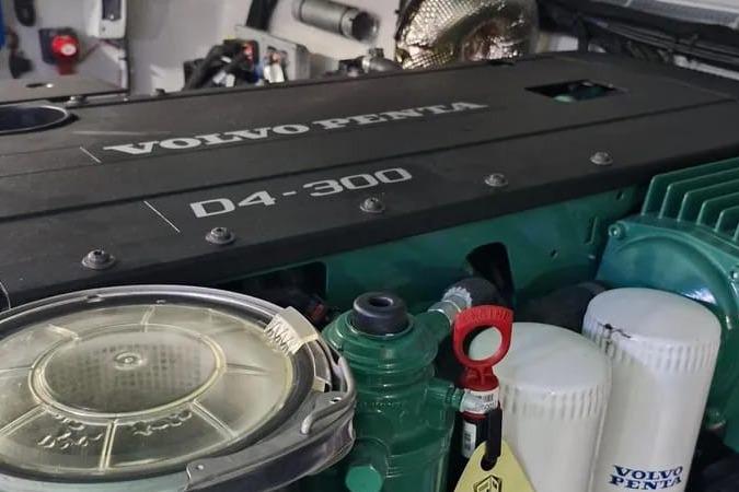 De navigatie is van Raymarine en erg compleet met onder andere een Axiom 12 kaartplotter en autopilot. Electrische trimtabs met digitale aanduiding, brandblussysteem, elektronische besturing, zware Sidepower boeg- en hekshroef, Volvo digitaal display: alles is aanwezig.